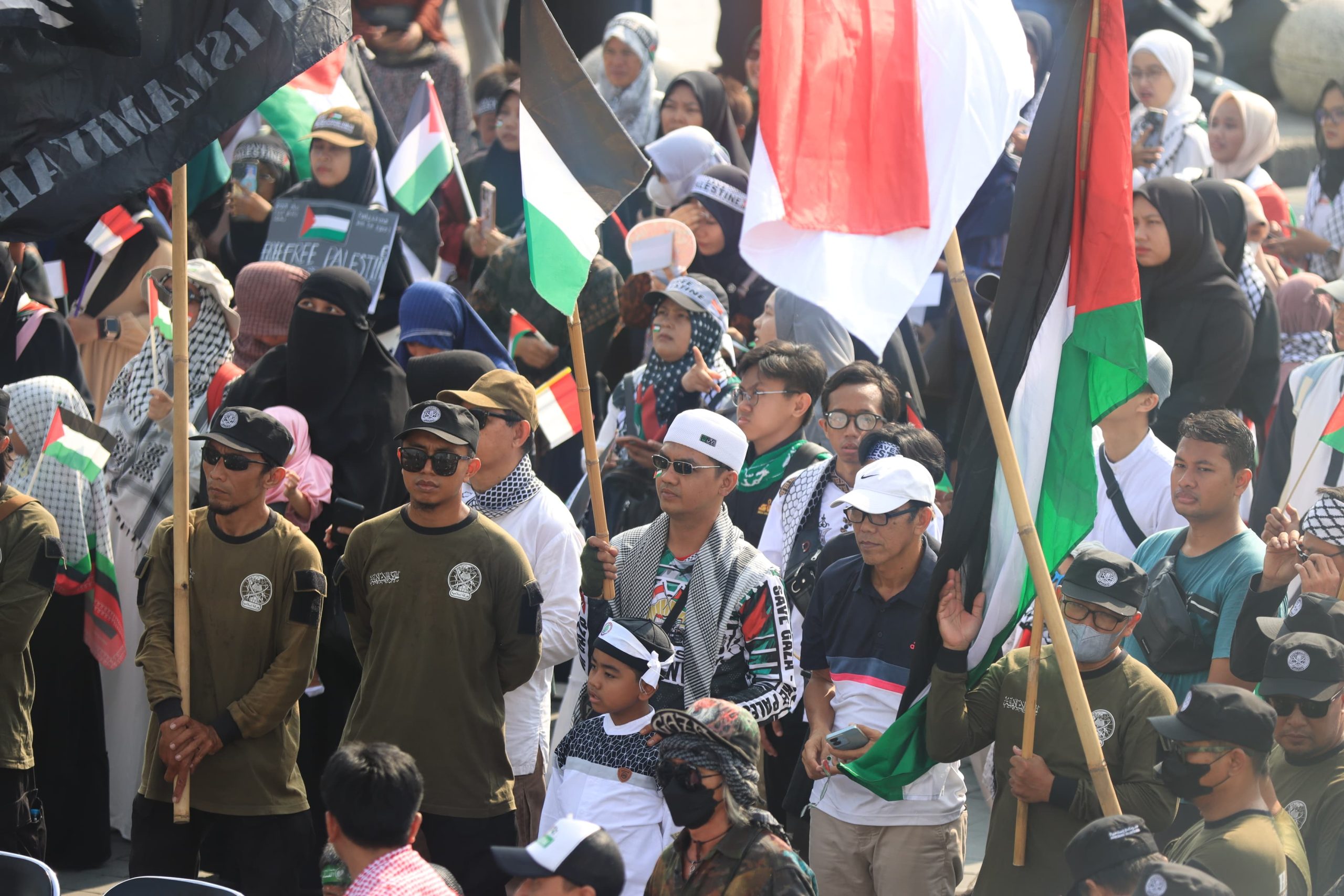 Ribuan massa hadir membawa semangat “Damai di Indonesia, Insyaallah Sampai Palestina.”